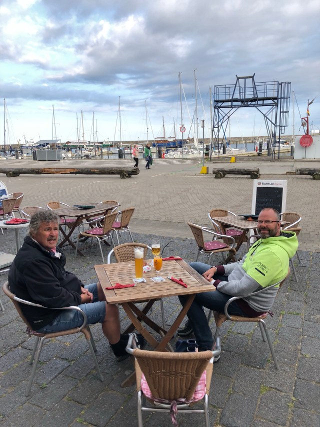 Wir liegen noch bis Samstag im Hafen von Sassnitz. Am Mittwoch, als wir einliefen, waren nur sehr wenige Segelschiffe im Hafen. Es wirkte irgendwie alles ziemlich trist. „Oh man, wo sind wir hier nur gelandet?“ dachte ich zuerst. Aber nachdem ich die supersauberen, modernen sanitären Anlagen gesehen hatte, sowie ein sehr leckeres Backfischbrötchen gegessen hatte und wir auf dem Boot in der Sonne dösten, gefiel mir Sassnitz immer mehr. Der Hafen wird mit der hochgelegenen Stadtmitte über eine architektonisch herausragende Brücke verbunden. Sie sieht klasse aus, sehr modern und ist 16 m hoch. Fotos folgen, kann gerade keine hochladen. Gestern brauchten wir für eine kleine Reparatur einen Lötkolben. Chris hat unser Schiff auseinander genommen, unser Lötkolben war nicht zu finden. So machte ich mich auf, die anderen Segler danach abzuklappern. Keiner hatte einen. Endlich bekam ich einen Hinweis, wen ich fragen könnte. Bis zu deren Werkstatt bräuchte ich gute 10 min. und die 2 Männer in der Halle hatten in 5 min. Feierabend. Sie gaben mir einen Lötkolben, als Pfand ließ ich meine Handtasche da. Leider löste der Lötkolben nicht unser Radioproblem. Aber es war echt nett von Ihnen, mir auszuhelfen.