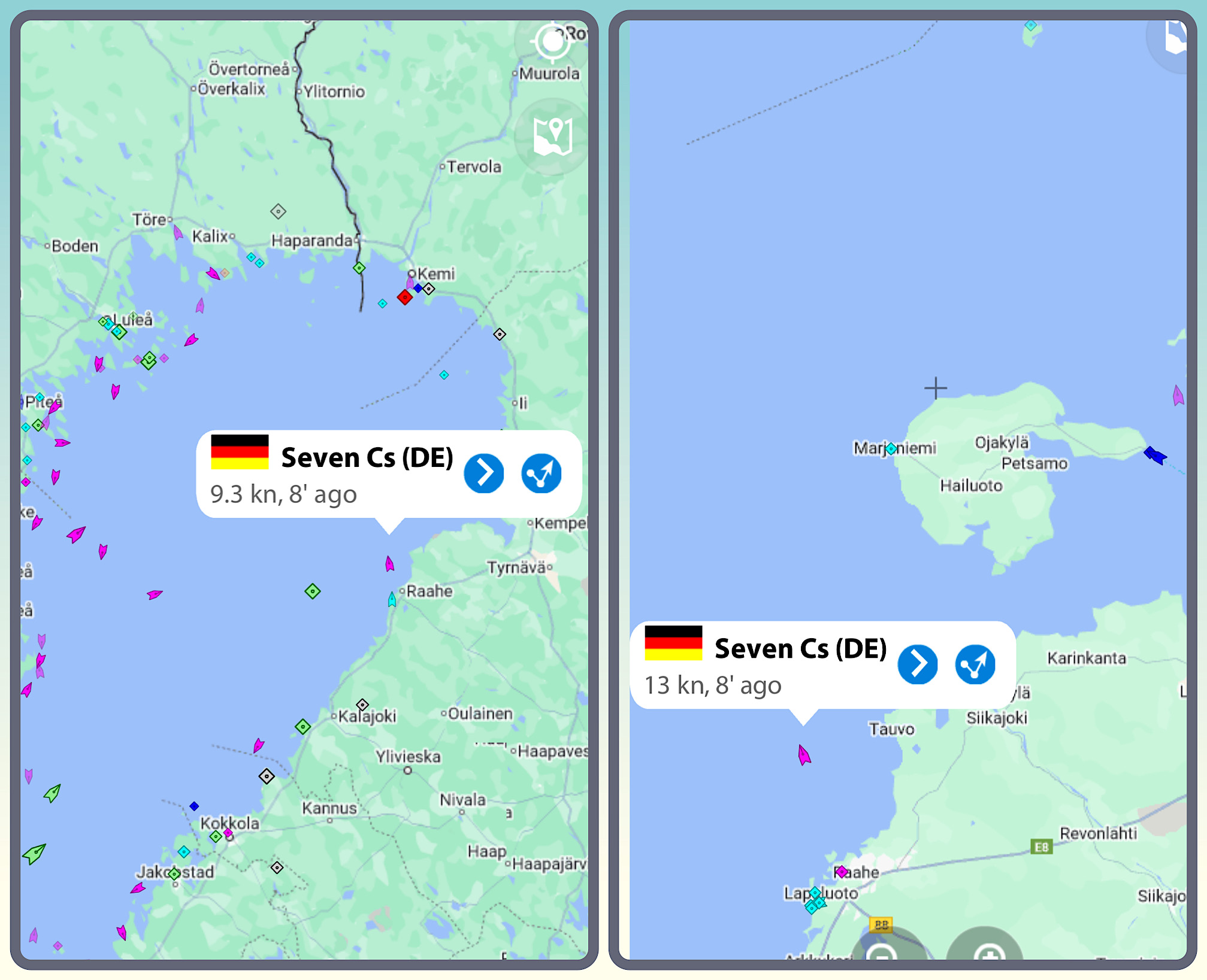 Vorgeschichte: Kaum das wir im Hafen von Raahen Purjehdusseuran Terässatama eingelaufen waren, wurden wir von einem finnischen🇫🇮 Motorbootfahrer angesprochen, da er sah, das wir aus Deutschland 🇩🇪 stammen. Wir unterhielten uns angeregt und er meinte dann, dass wir unbedingt ein bestimmtes, bekanntes Café in Raahe besuchen sollten. Knackpunkt: es hatte nicht mehr lange auf und es war etwas weiter entfernt. Kurzerhand lud er uns beide und Onni aufs Motorboot ein, indem schon seine Familie mit Hund saß. Er fuhr uns zur Anlegestelle, von wo aus es nicht mehr weit zum Café war. Und- es hatte sich gelohnt, der Kuchen war sehr lecker, der Kaffee gut und das Ambiente wunderbar.